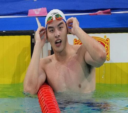 获得50米蛙泳冠军的一刻,尚在泳池中的郑英昊看上去有些迟疑,他似乎有些不相信是自己拿到了金牌,也不相信自己这一次创造了26秒97的个人最好成绩。