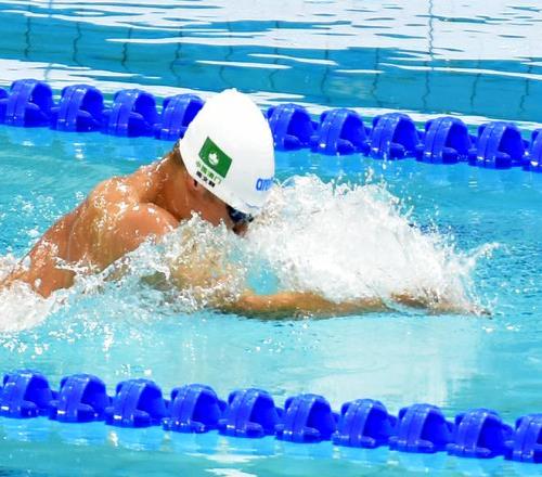 澳门泳手周文颢混合4x100游第二棒蛙泳接力,与队友一起把澳门纪录推快2秒05。