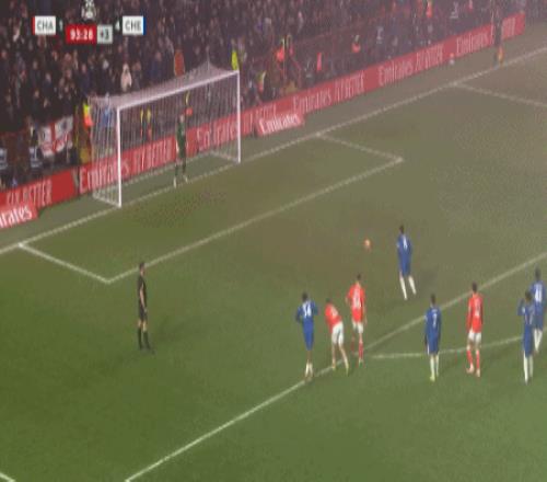 第90+1分钟,内托禁区左路内切抽射破门,切尔西4-1查尔顿