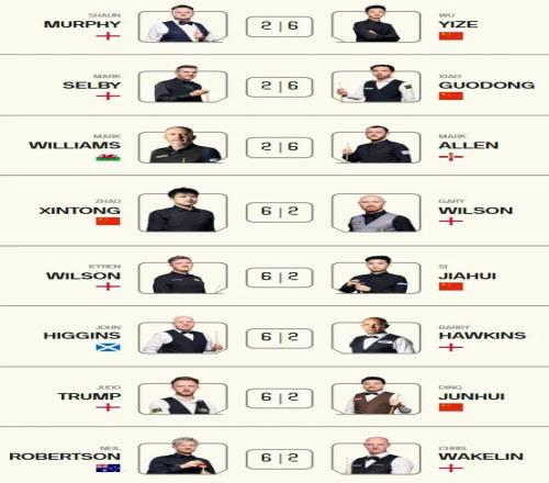 奇怪的默契增加了!斯诺克大师赛首轮比分全是62三名中国选手闯入八强