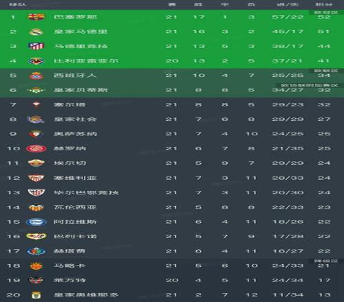 北京时间1月27日,随着赫罗纳1-1赫塔费的比赛结束,西甲第21轮结束了所有比赛,我们看看最新积分榜变动!