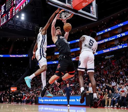 本场比赛中,火箭的先发中锋阿尔佩伦-申京(Alperen Sengun)算是打出了一场现象级的比赛。申京全场出场33分41秒,投篮17中15,三分线外1中0,罚球4中3,得到了33分9篮板6助攻1抢断的全面数据,其中还包括了3个前场篮板,还有5次失误和5次犯规,正负值为+12。申京在进攻端简直是势不可挡,他的进攻效率简直是高到了离谱的程度,对手根本没有办法对他进行有效地限制,他完全就是弹无虚发,给对手内线制造了巨大的压力。申京在其他方面也同样展现出了一定的效果,在防守端地表现也是相当稳定的,在传球和组织方面也是起到了很好的效果的。不夸张地说,但凡申京在本场比赛中的进攻效率稍微差一点,火箭可能都未必能够咬住比分,也未必有机会取得这场胜利。